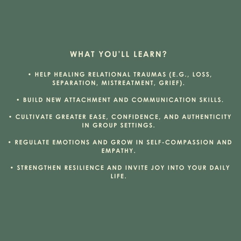 This Resiliency Circle (RC) offers a unique environment to experience a safe, regulating, and enjoyable relational space. Together with about 6 to 10 other individuals, you will embark on a journey toward greater ease in your relationships with yourself, others, increased capacity to handle challenges, and most of all, a new sense of embodied enjoyment in being with others.
